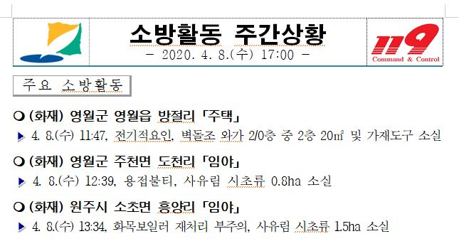 소방활동 주간상황 (4. 8. 수) 17:00