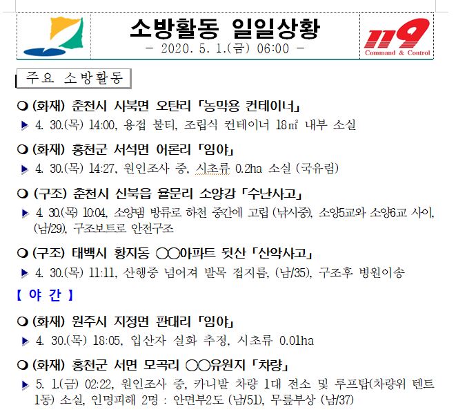 소방활동 일일상황 (5. 1. 금) 06:00
