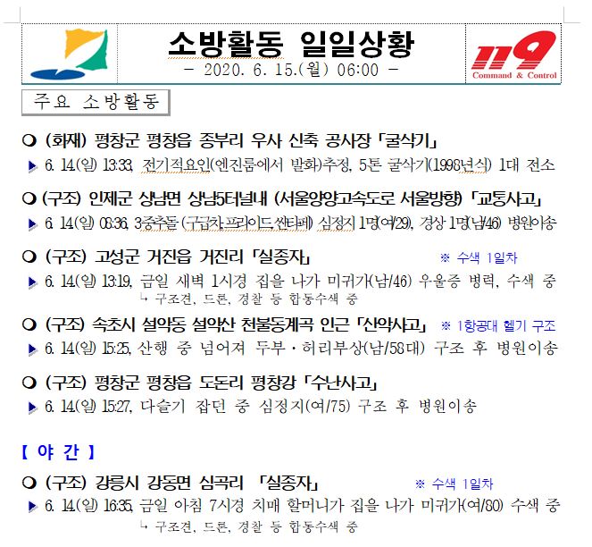 소방활동 일일상황 (6. 15. 월) 06:00