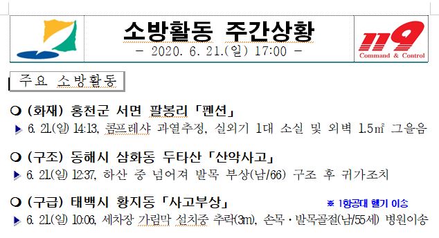 소방활동 주간상황 (6. 21. 일) 17:00