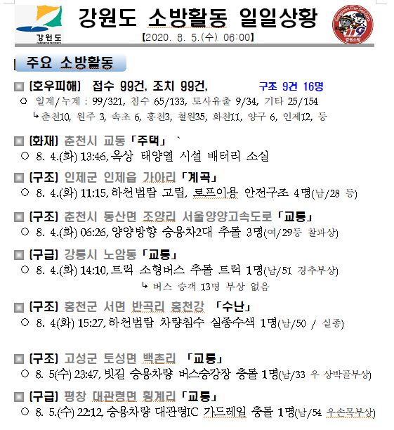 소방활동 일일상황 (8. 5. 수) 06:00