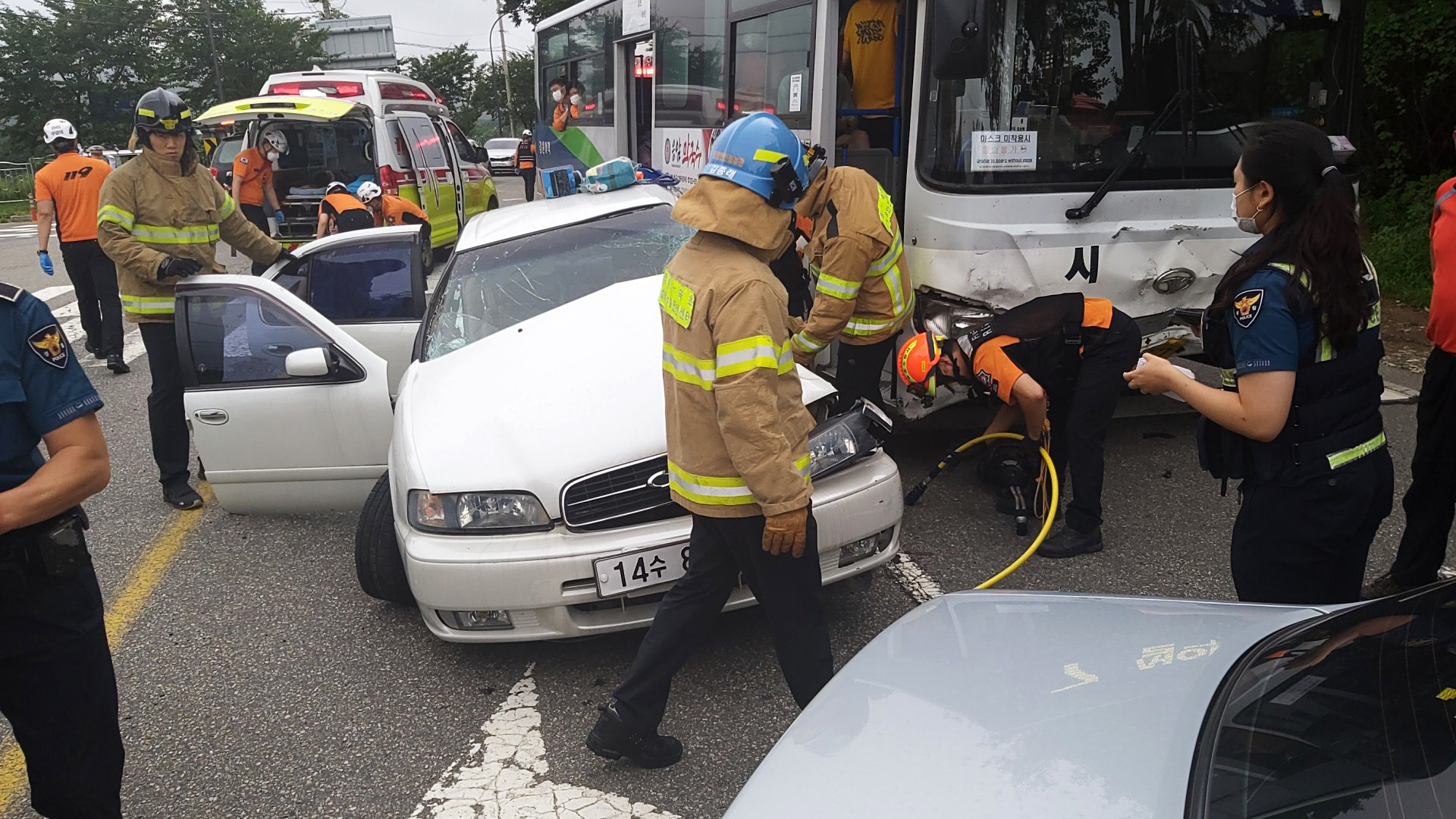 - 속초 버스&승용차량 교통사고 현장입니다.