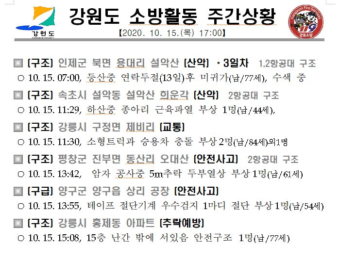 강원도 소방활동 주간상황(10. 15. 목) 17:00