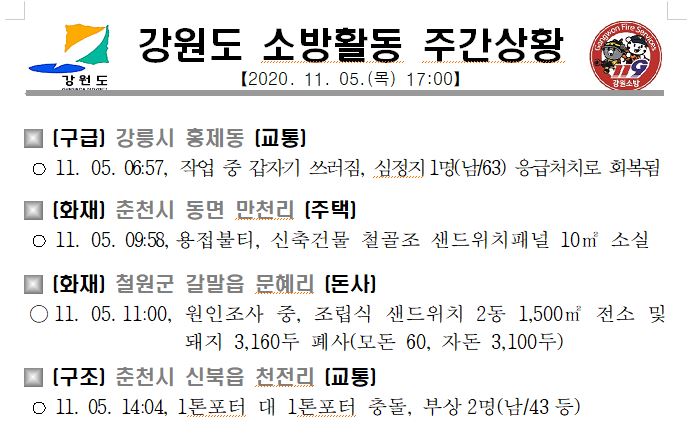 강원도 소방활동 주간상황(11. 5) 17:00