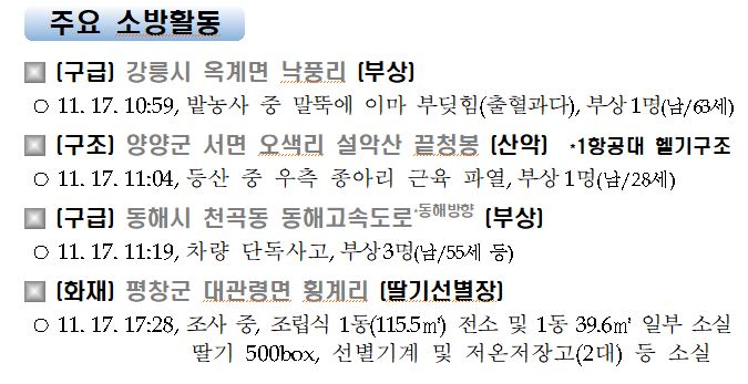 강원도 소방활동 일일상황(11. 18. 수) 06:00