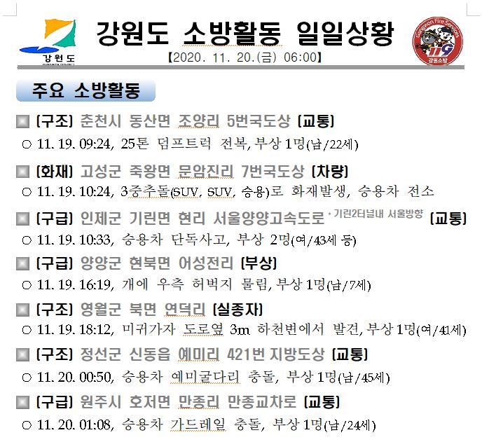 강원도 소방활동 일일상황(11.20.금) 06:00