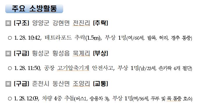강원도 소방활동 주간상황(1. 28. 목) 17:00
