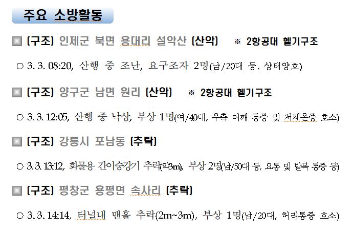 강원도 소방활동 주간상황(3. 3. 수) 17:00