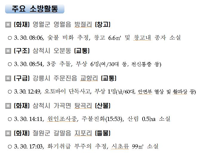 강원도 소방활동 일일상황 (3. 31. 수) 06:00