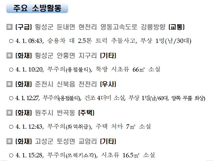 강원도 소방활동 일일상황 (4. 2. 금) 06:00