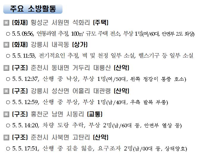 강원도 소방활동 주간상황(5. 6. 목) 06:00
