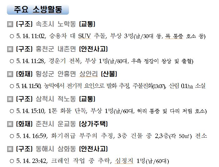 강원도 소방활동 일일상황(5. 15. 토) 06:00
