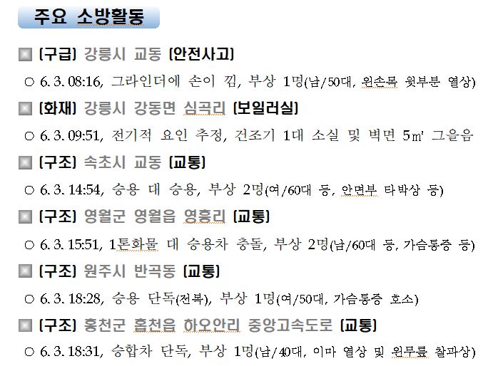 강원도 소방활동 일일상황 (6. 4. 금) 06:00