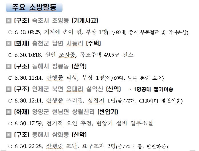 강원도 소방활동 일일상황 (7. 1. 목) 06:00