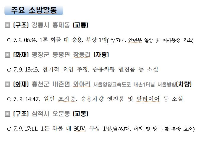 강원도 소방활동 일일상황 (7. 10. 토) 06:00