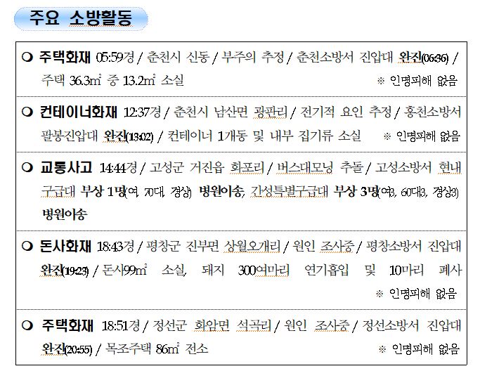 강원도 소방활동 일일상황 (8. 20. 금) 06:00