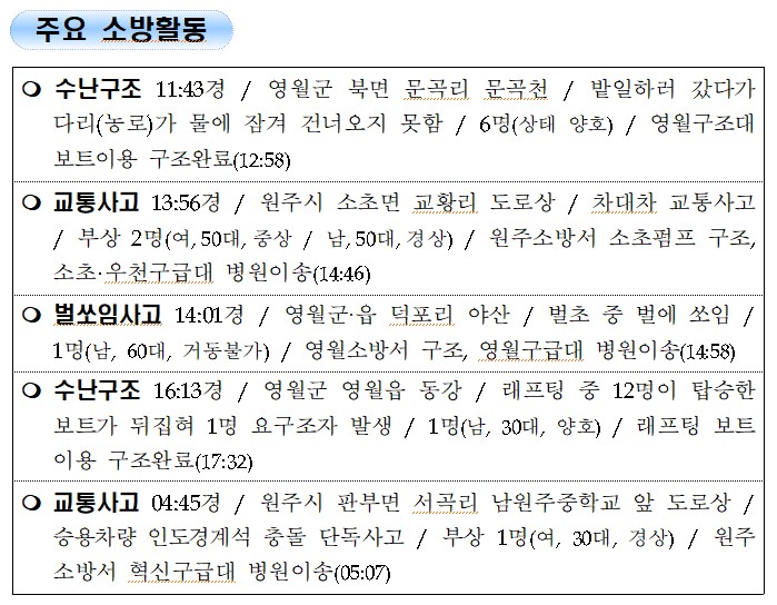강원도 소방활동 일일상황 (9. 2. 목) 06:00