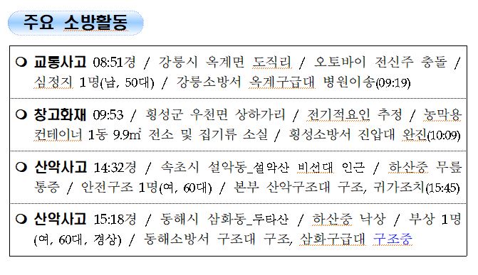 강원도 소방활동 주간상황 (10. 10. 일) 17:00
