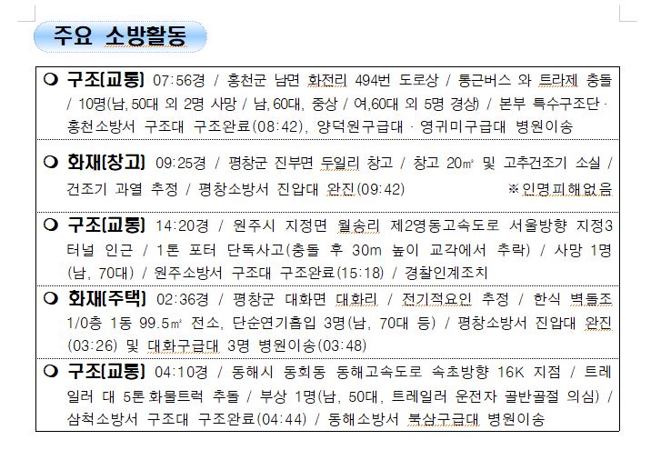 강원도 소방활동 일일상황 (11. 10. 수) 06:00