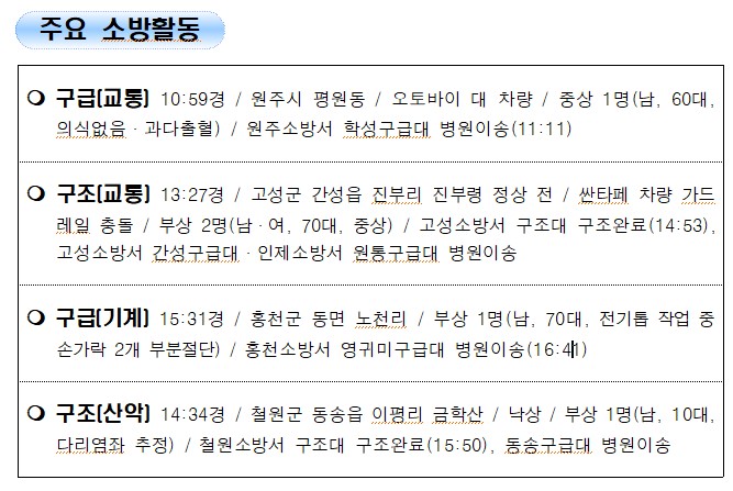 강원도 소방활동 일일상황 (12. 5. 일) 17:00