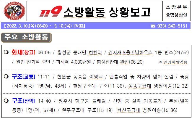 119소방활동 상황보고(3.10.목) 17:00