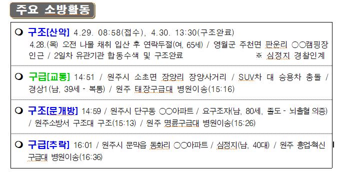 119 소방활동 상황보고(4. 30. 토) 06:00