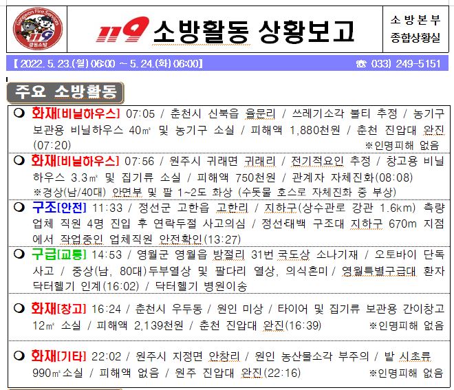 119 소방활동 상황보고(5. 24. 화) 06:00