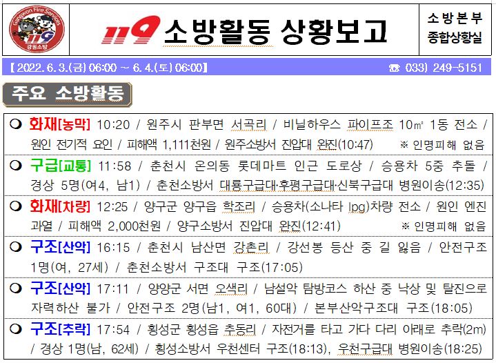 119 소방활동 상황보고(6. 4. 토) 06:00