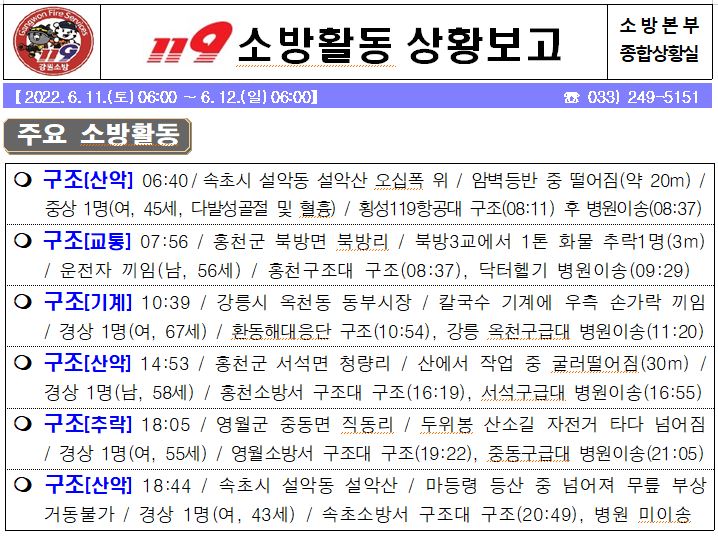 119 소방활동 상황보고(6. 12. 일) 06:00