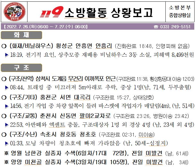 119 소방활동 상황보고(7. 27. 수) 06:00