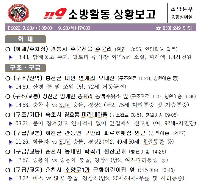 119 소방활동 상황보고(9. 20. 화) 17:00