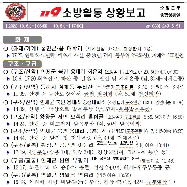 119 소방활동 상황보고(10. 8. 토) 17:00