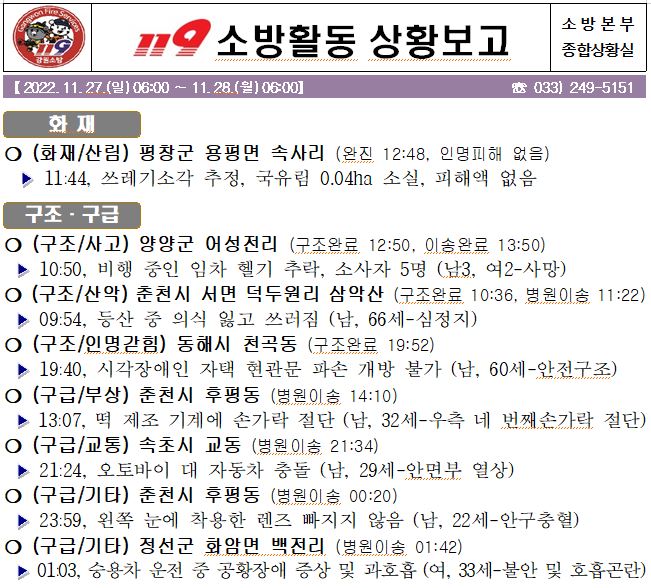 119 소방활동 상황보고(11. 28. 월) 06:00