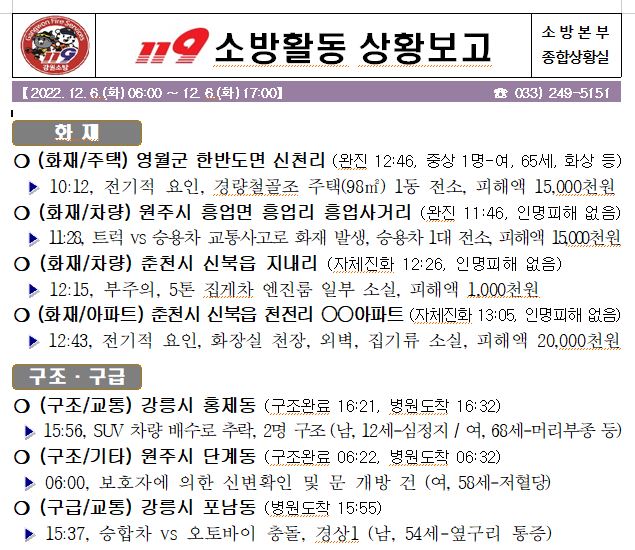 119 소방활동 상황보고(12. 06. 화) 17:00