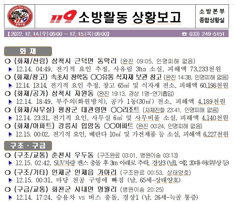 119 소방활동 상황보고(12. 15. 목) 06:00