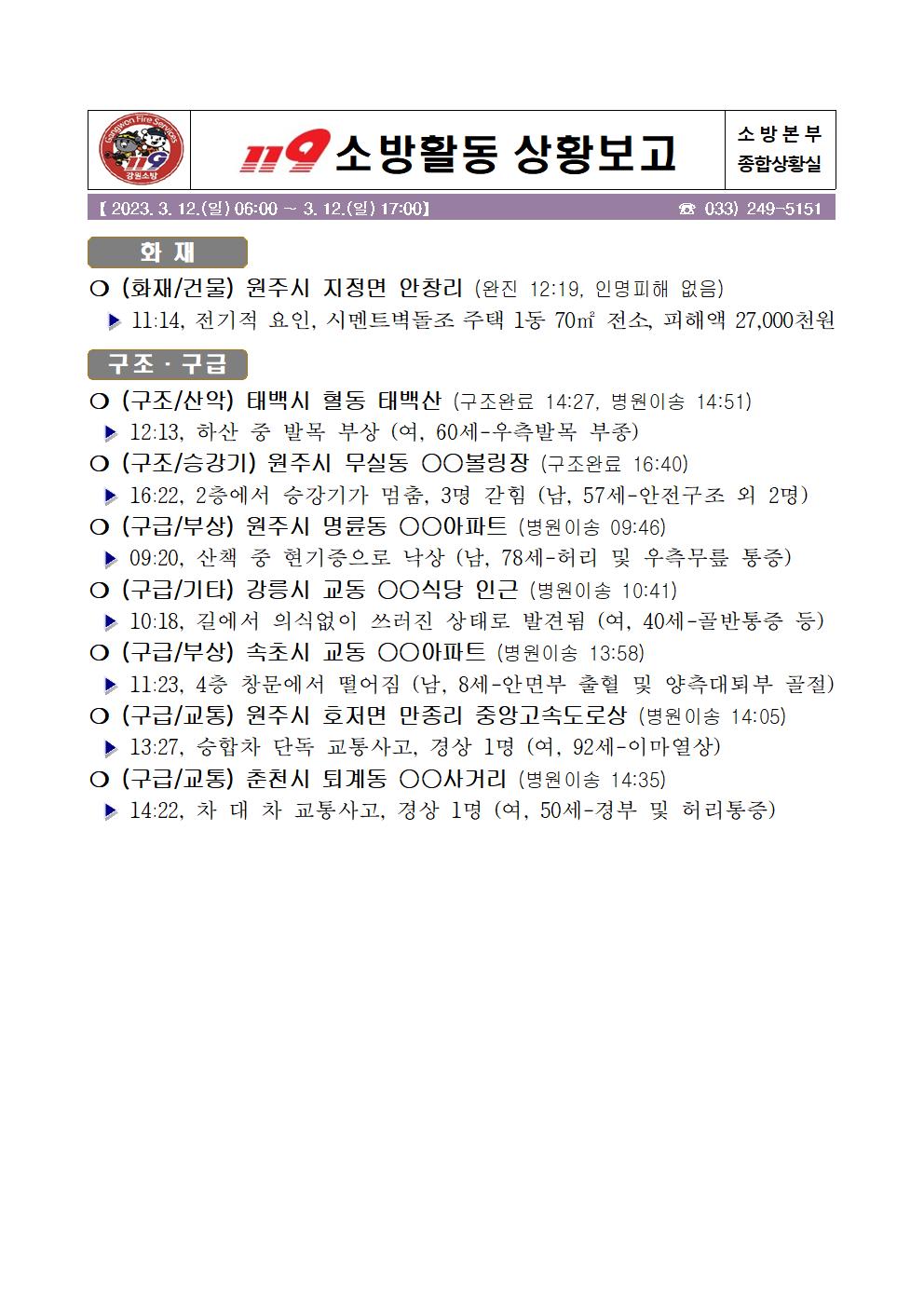 119 소방활동 상황보고(3. 12. 일) 17:00
