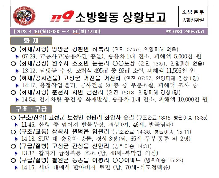 119 소방활동 상황보고(4. 10. 월) 17:00