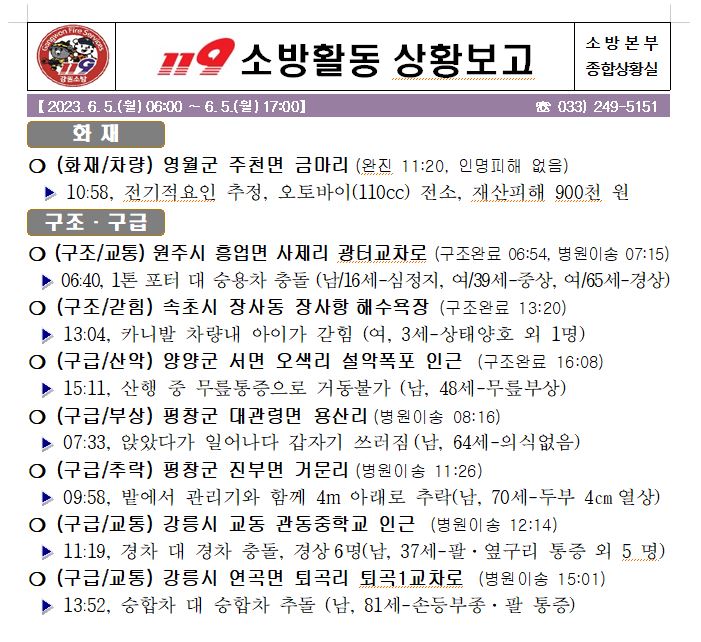 119 소방활동 일일상황보고(6. 5. 월) 17:00