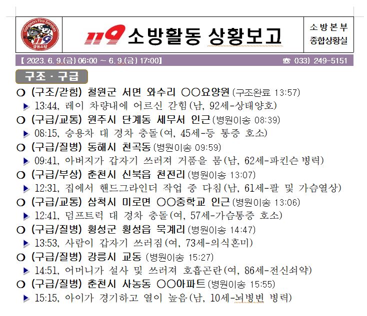 119 소방활동 일일상황보고(6. 9. 금) 17:00