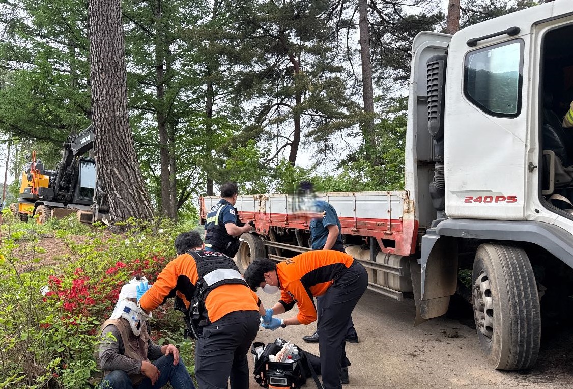 영월 산솔면 임도 트럭 단독사고 현장 사진