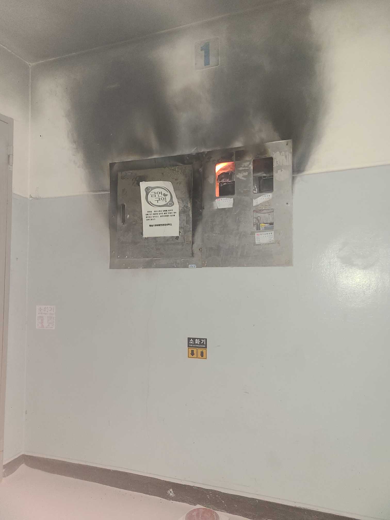 2116 영월 아파트 1층 복도 배전반 화재 소방활동 사진