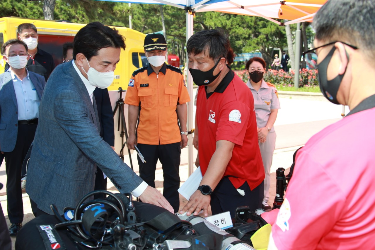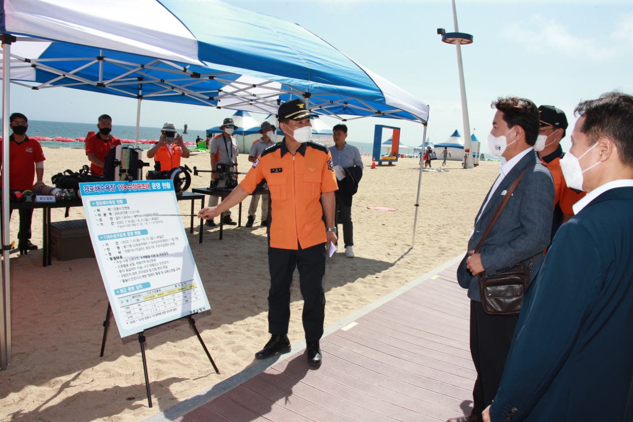 김진태 도지사, 경포해수욕장 119수상구조대원 격려