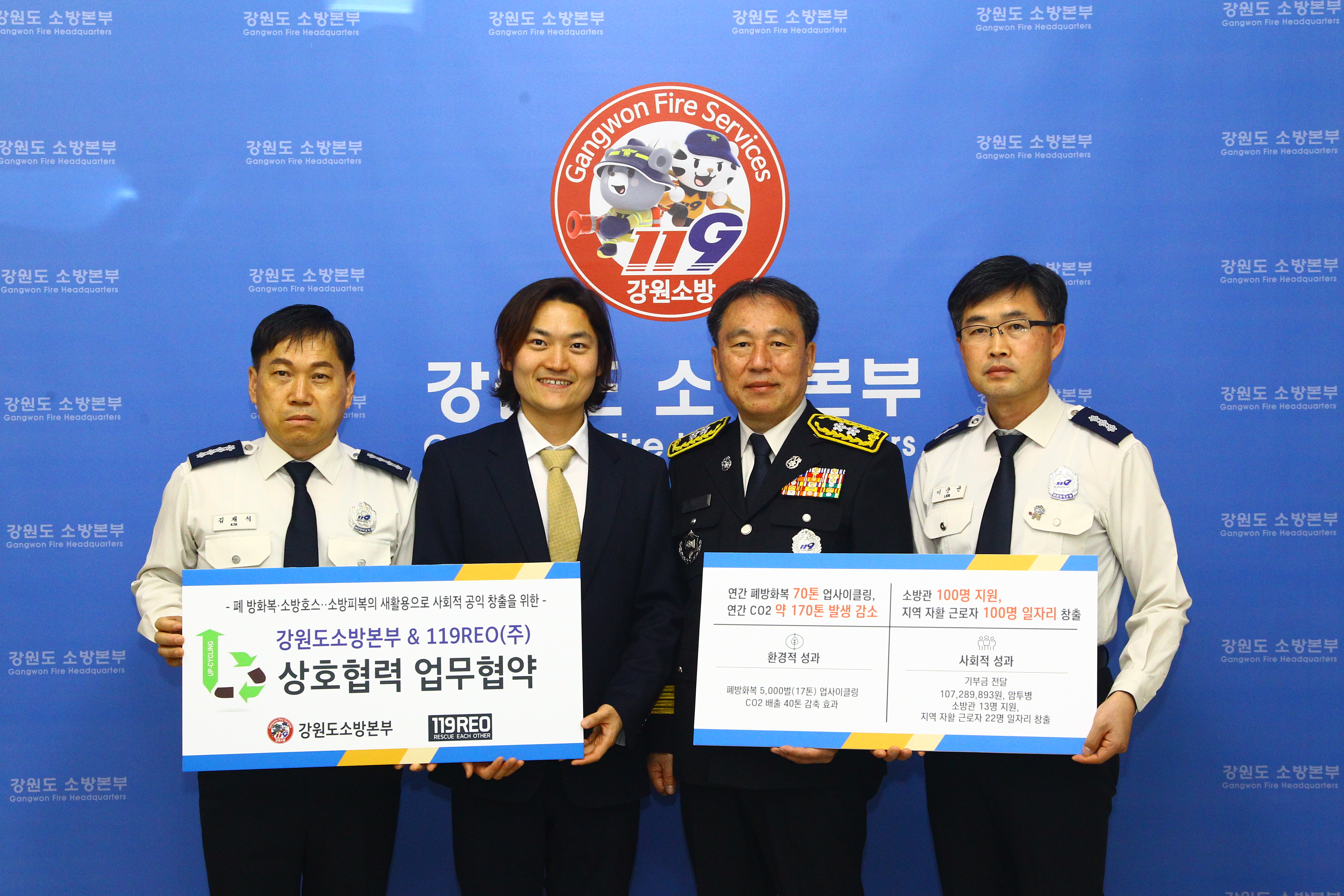 폐방화복에 새생명을 119REO(주)와 업무협약