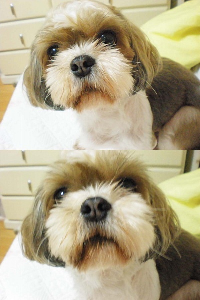 코가살짝까지고 머리에는 흰색털이나있음
