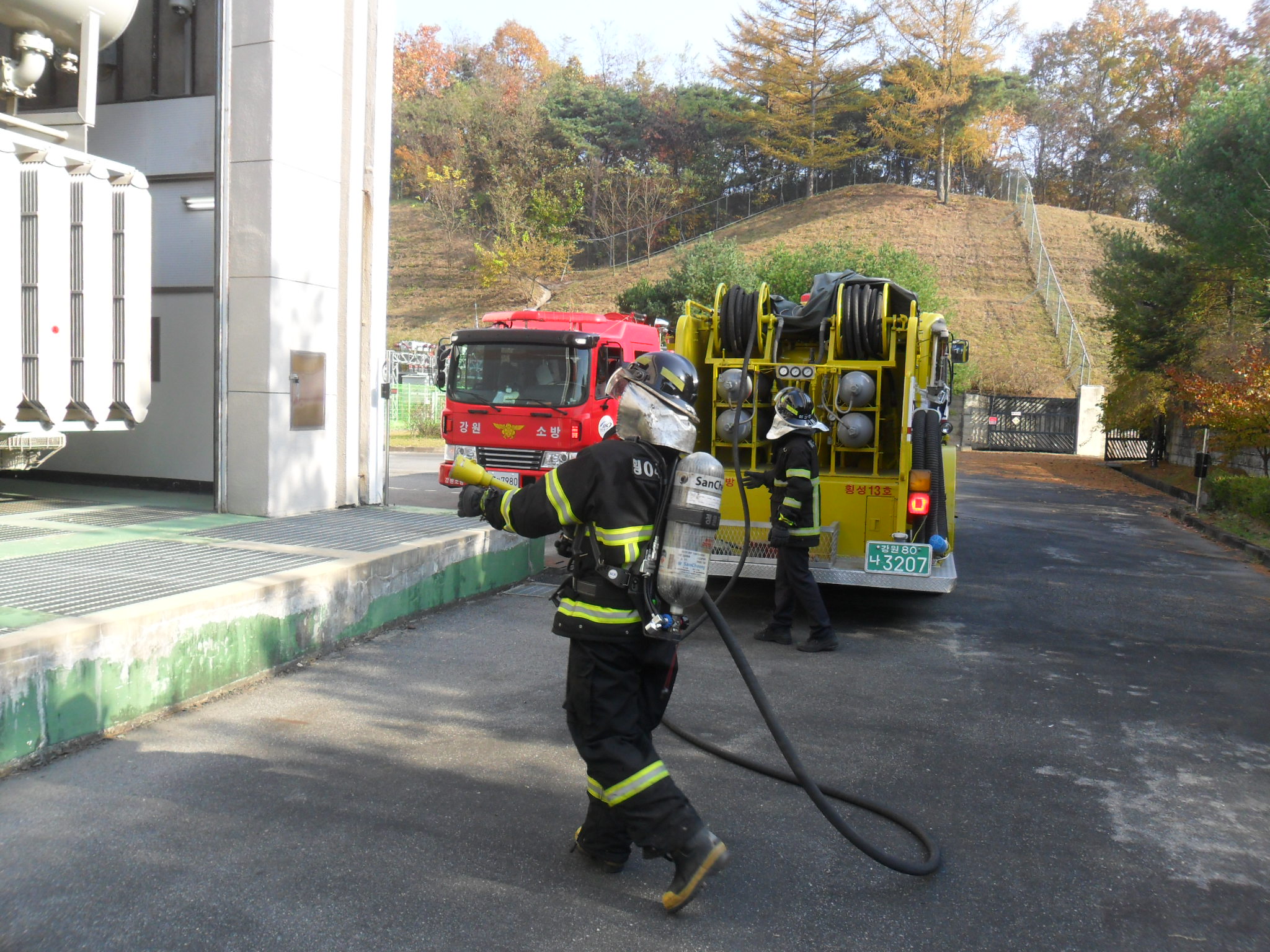 횡성소방서(서장 정은철) 구조진압대에서는 2012년 10월 29일 횡성읍 조곡리에 위치한 횡성 변전소를 대상으로 현장출동적응훈련을 실시하였습니다.