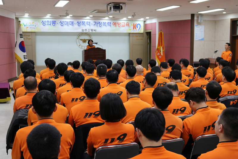 원미숙 소방서장은 “요즘 ME TOO 운동으로 이슈인 성폭력 문제를 다시 한 번 생각해보는 시간을 갖고 이번 교육을 통해 직장안팎에서 발생할 수 있는 성희롱·성폭력을 예방하고 공직기강 확립에 힘써주기 바란다.”고 전했다.