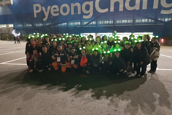 강릉소방서(서장 이진호)는 지난 14일 2018 동계패럴림픽 기간 중 강릉소방서 4개 여성의용소방대로 구성된 서포터즈 58명이 휠체어컬링경기장에 참여하여 패럴림픽 열기 확산과 응원 활동을 펼쳤다.