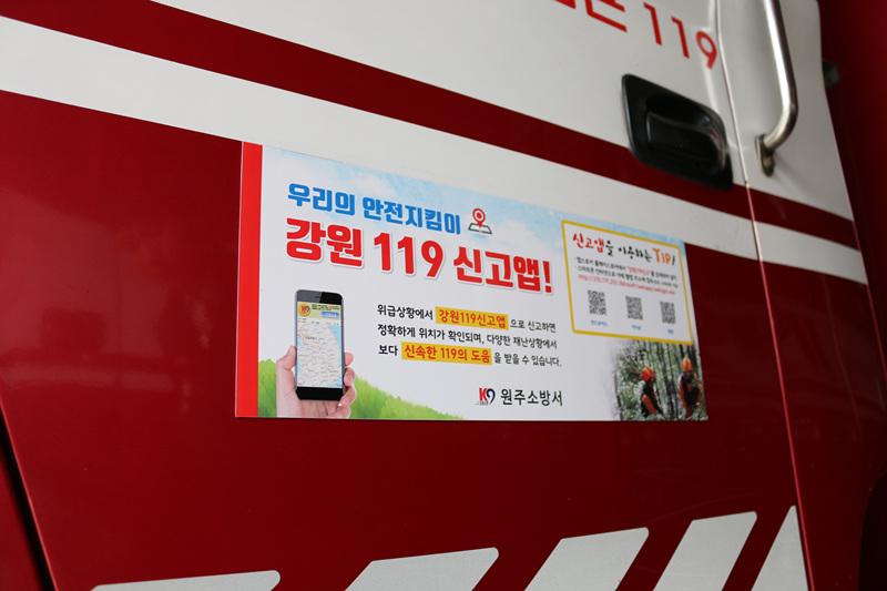 소방차량 부착용 홍보물 13점을 제작하여 현장대응과, 안전센터, 지역대, 구조대 소방차량에 홍보물을 부착하여 많은 시민들이 쉽게 볼 수 있도록 하여 많은 홍보가 될 것으로 보인다고 밝혔다.
