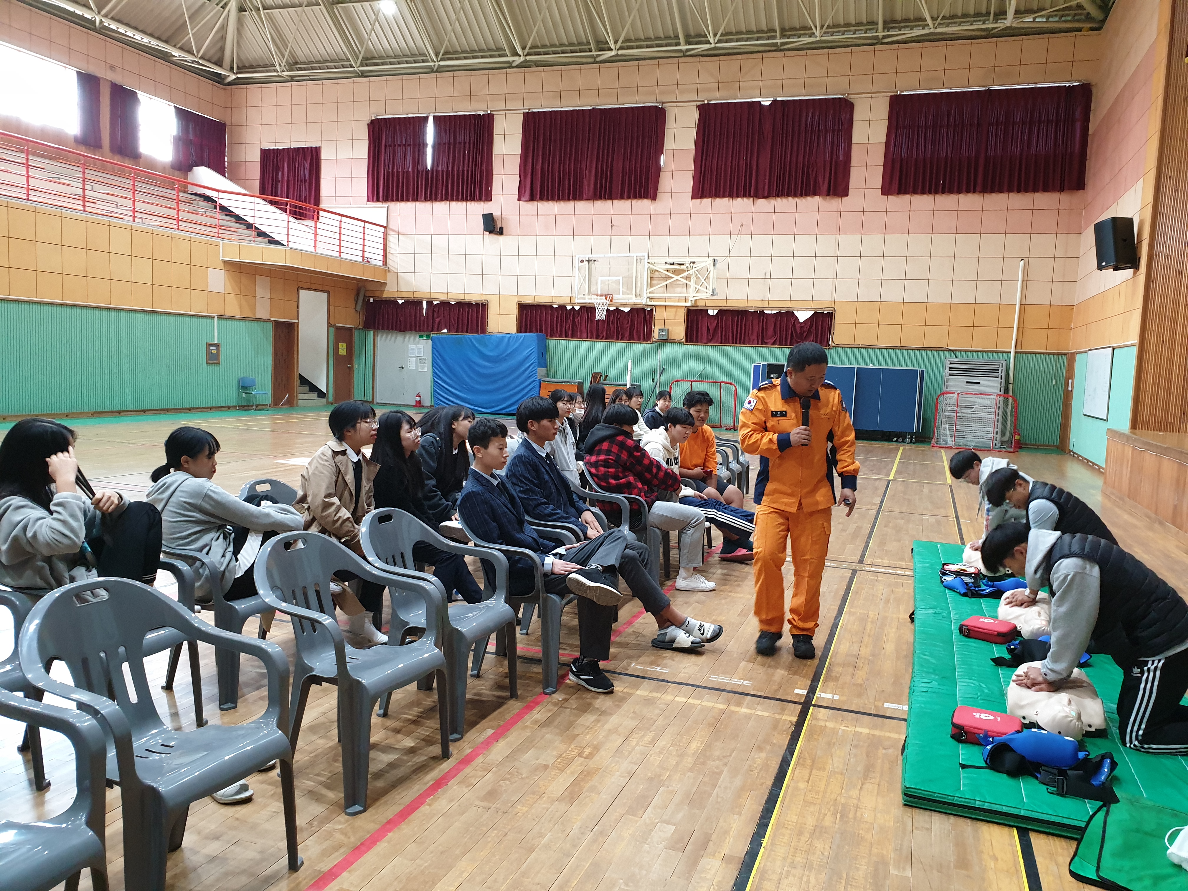 홍천소방서(서장 이기중)는 16일 14시부터 2시간동안 서석고등학교 2학년학생 및 교직원을 대상으로 심폐소생술 및 기도폐쇄응급처치 교육을 실시하였다. 학생들의 적극적인 참여로 심도깊은 교육을 하였다.