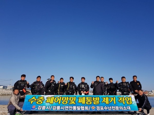 경포수난전문의용소방대(대장 허만돈)은 지난 20일부터 21일까지 2일간 강릉시 경포, 사천, 주문진 해변 수중에서 폐어망 및 폐통발 제거 등 수중정화활동을 실시했다.